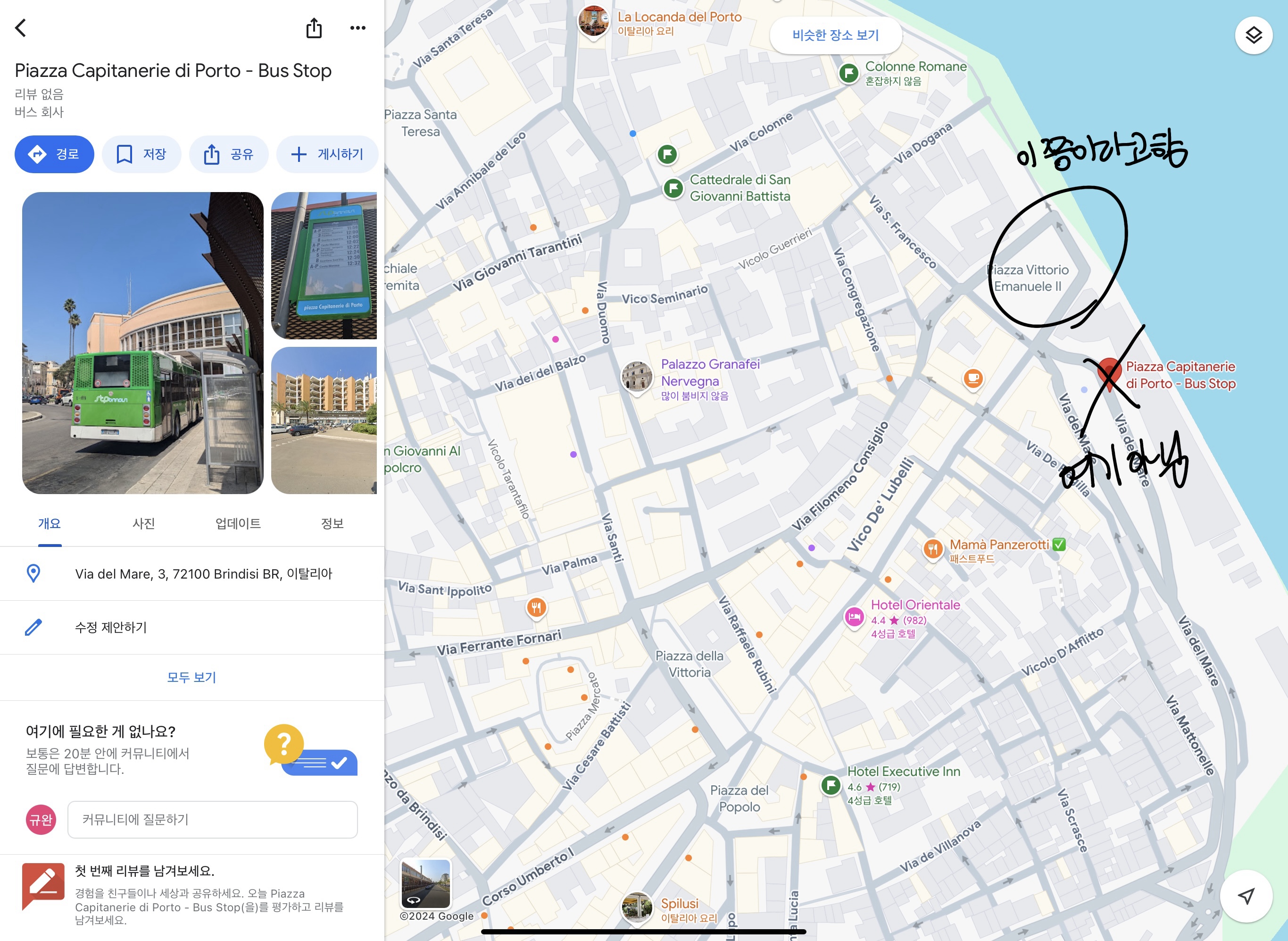 당연히 아래 구글맵에 있는 이 버스 정류장인줄 알고 있다가, 10~20분을 기다리는데 버스가 안오더라 ㅠ