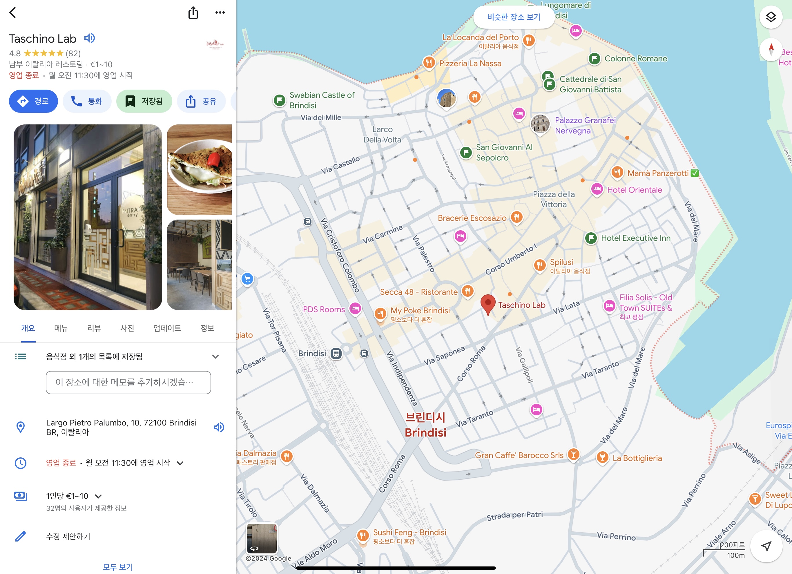 이후, 점심시간이 되어 구글맵으로 식당 검색 후 지금 영업 중인 곳 중 평점이 가장 좋은곳으로 찾아갔다.